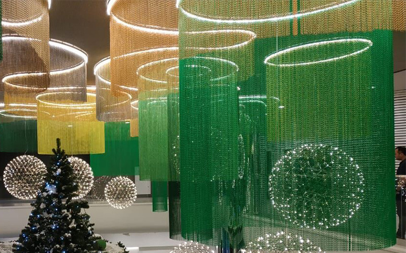 توفر ستائر الشاشة المصنوعة من سلسلة الألومنيوم ذات الحجم المخصص حلاً جذابًا وعمليًا لقاعات المعارض والمساحات التجارية والتطبيقات الزخرفية. يوفر بناء السلك 2.0 مم متانة مع الحفاظ على مظهر أنيق.